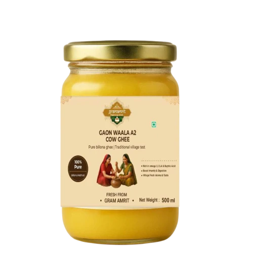 Experience the real village-style desi ghee with Gaon Waala A2 Cow Ghee, prepared using the ancient Bilona method followed for generations in Indian villages. This ghee is handcrafted in small batches, ensuring unmatched purity, aroma, and nutrition.